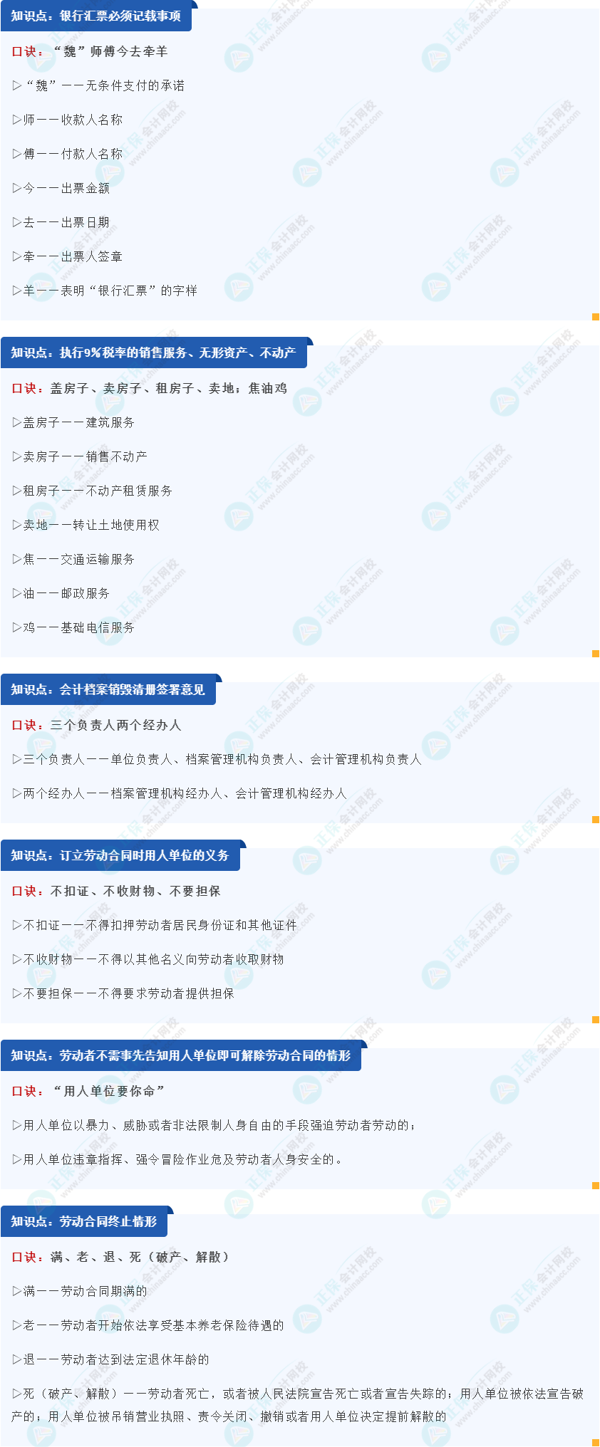初级会计考试虽然不难,但是考试范围广,涉及到的考点也比较多,找到合适的记忆考点方法显得尤为重要,正保会计网校教研团队整理了初级《经济法基础》必背口诀,供大家备考使用,一起来收藏吧~