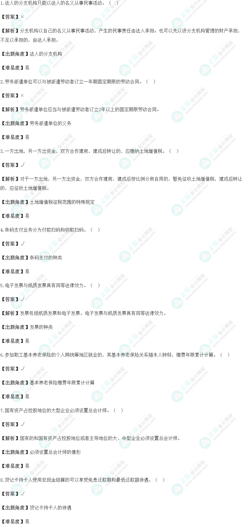 以下是2024年初级会计考试试题《经济法基础》判断题(回忆版第一套试卷)详细内容: