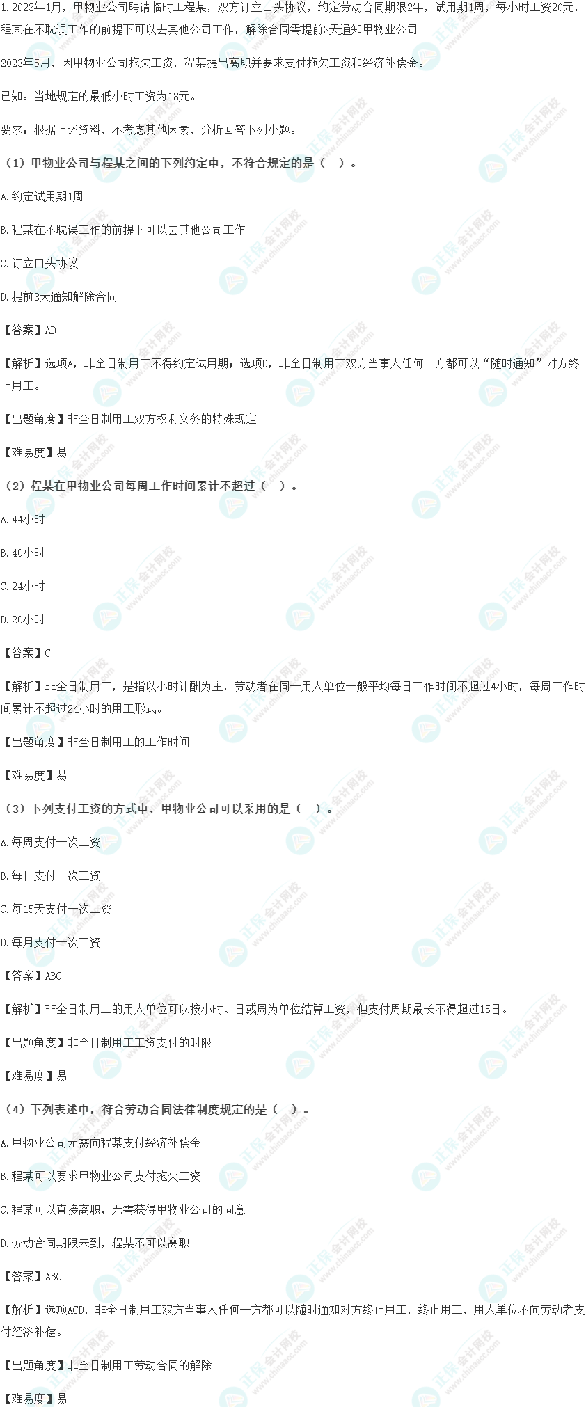 以下是2024年初级会计考试试题《经济法基础》不定项选择题(回忆版第一套试卷)详细内容: