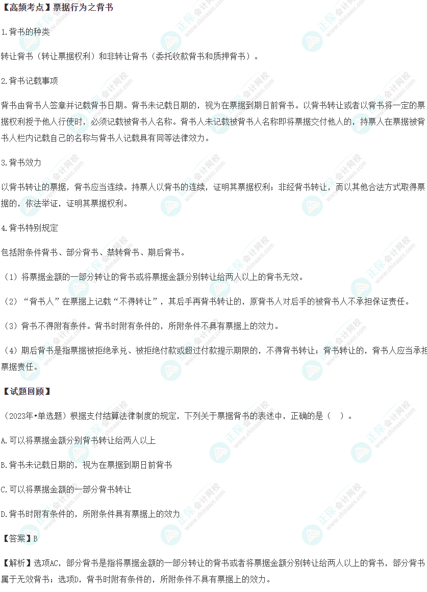 我们一起来学习2024《经济法基础》高频考点:票据行为之背书。本考点属于《经济法基础》第三章支付结算法律制度第三节银行非现金支付业务的内容。