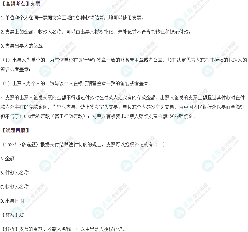 我们一起来学习2024《经济法基础》高频考点:支票。本考点属于《经济法基础》第三章支付结算法律制度第三节银行非现金支付业务的内容。
