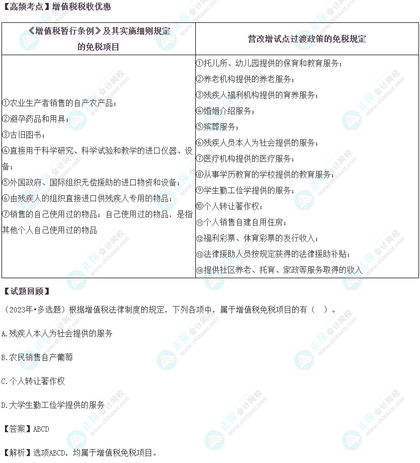 1.《增值税暂行条例》及其实施细则规定的免税项目