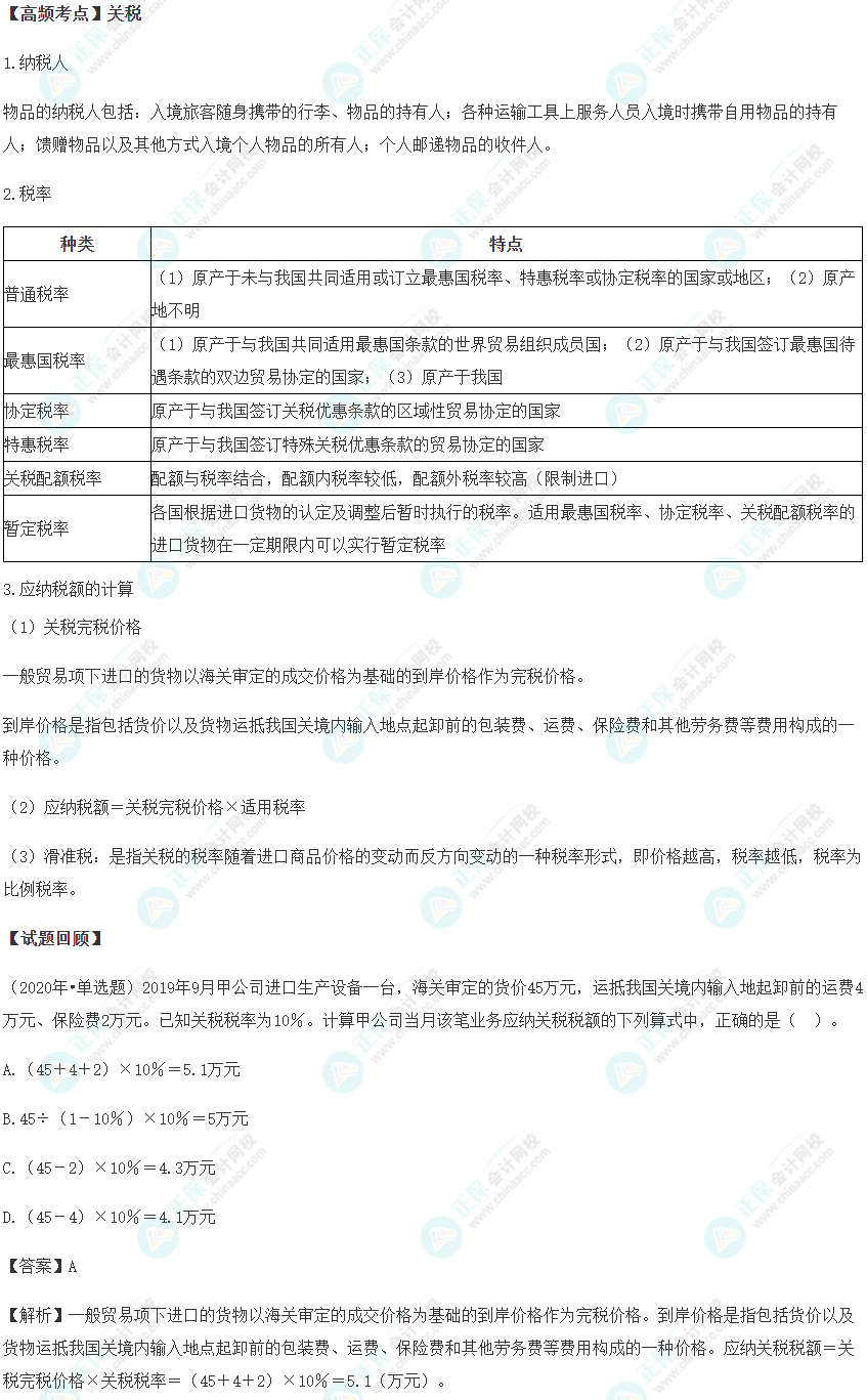 我们一起来学习2024《经济法基础》高频考点:关税。本考点属于《经济法基础》第四章税法概述及货物和劳务税法律制度第六节关税法律制度的内容。