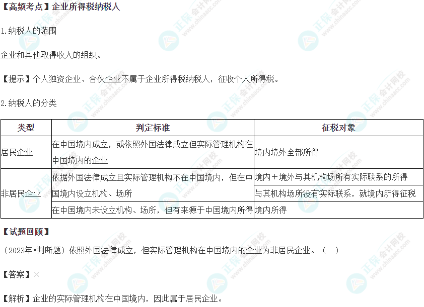 我们一起来学习2024《经济法基础》高频考点:企业所得税纳税人。本考点属于《经济法基础》第五章所得税法律制度第一节企业所得税法律制度的内容。