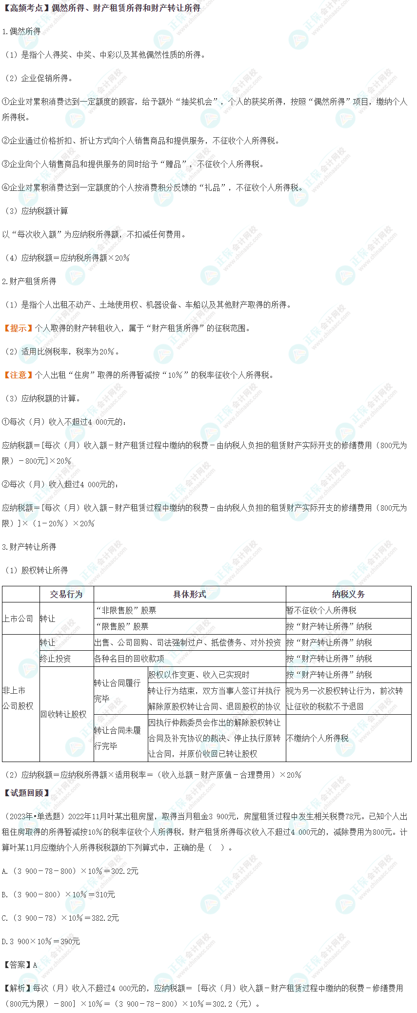 我们一起来学习2024《经济法基础》高频考点:偶然所得、财产租赁所得和财产转让所得。本考点属于《经济法基础》第五章所得税法律制度第二节个人所得税法律制度的内容。