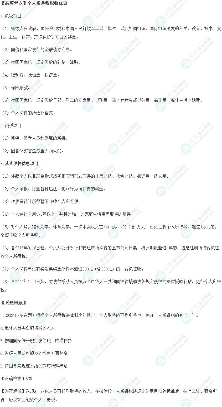 我们一起来学习2024《经济法基础》高频考点:个人所得税税收优惠。本考点属于《经济法基础》第五章所得税法律制度第二节个人所得税法律制度的内容。