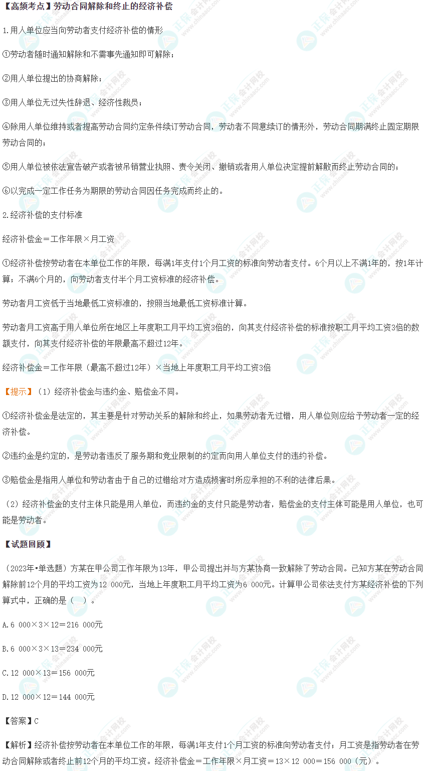 我们一起来学习2024《经济法基础》高频考点:劳动合同解除和终止的经济补偿。本考点属于《经济法基础》第八章劳动合同与社会保险法律制度第一节劳动合同法律制度的内容。