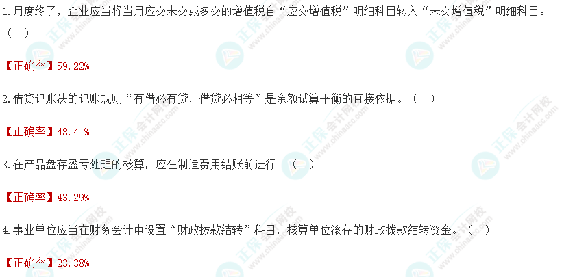 正保会计网校2024年初级会计第二次万人模考大赛已结束,根据各位学员答题情况,网校教研团队总结整理了二模出错率比较高的题目并进行综合分析,及时总结才能越来越好,看完相信对大家的做题有帮助哦~自由模考5月6日10:00-22日17:30举行,速去查看>