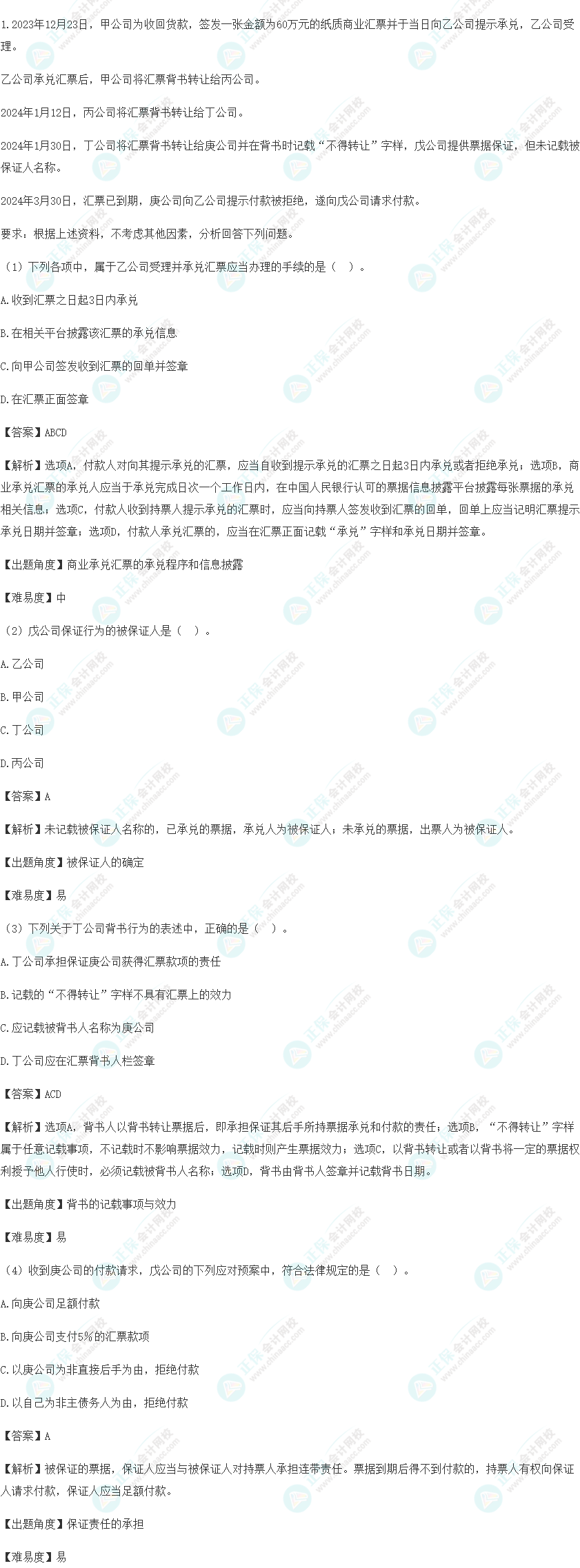 2024年初级会计考试终于结束啦,同学们考的如何呢?正保会计网校特整理的2024年初级会计考试试题及参考答案,本文为《经济法基础》不定项选择题回忆版第二套试卷,供大家参考,预估初级会计考试成绩,一起来看看吧。
