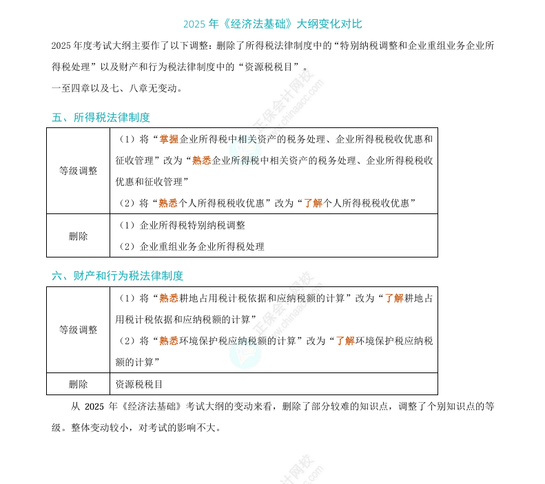 | 大纲通知 | 实务变动对比 | 经济法变动对比 | 直播解读 |
