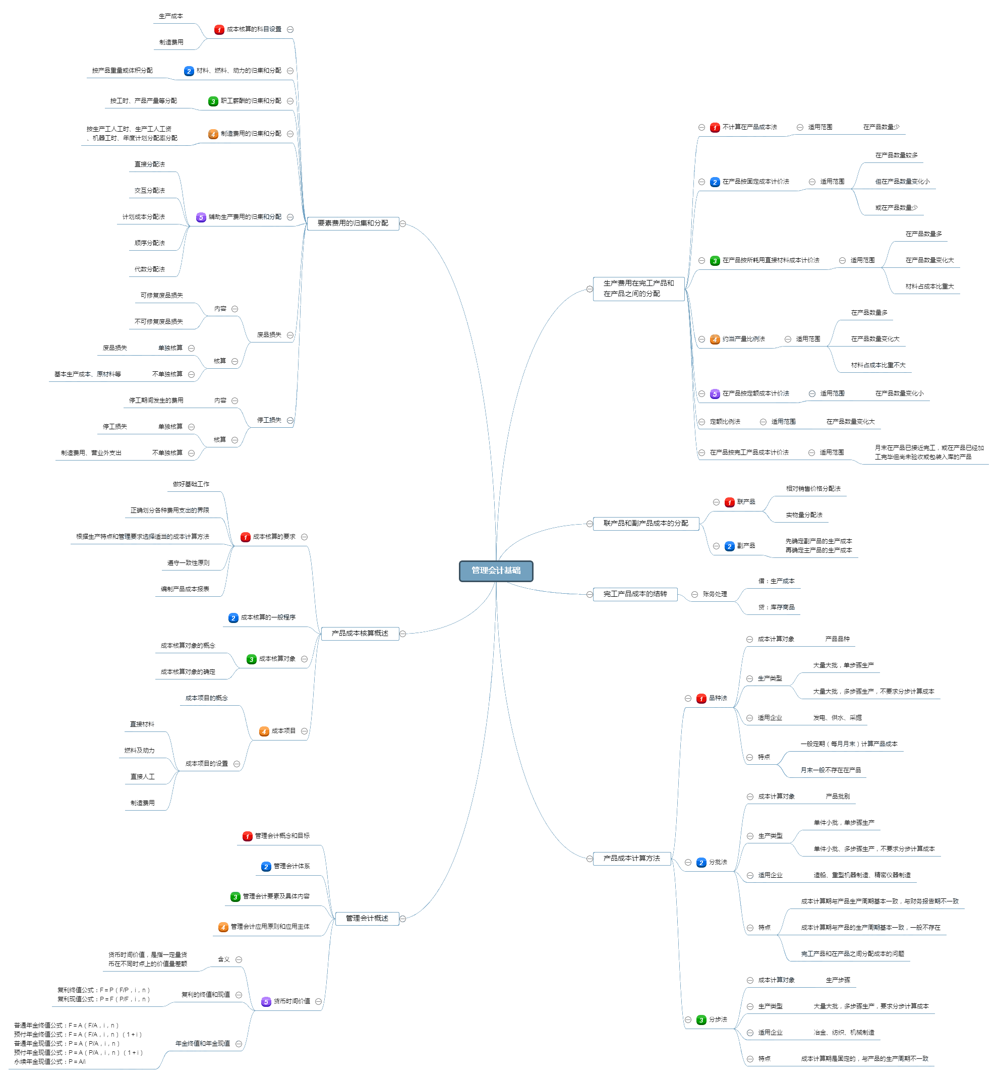 本章主要介绍成本费用的分配方法和产品成本计算方法。历年考试中,重点考查要素费用和生产费用的归集和分配、各类产品成本计算方法的基本理论等,覆盖了各种题型。特别是辅助生产费用的分配方法与生产费用在完工产品与在产品之间的分配方法,非常有可能出现在不定项选择题中。另外,管理会计概述中的货币时间价值的相关计算也是考查重点,所以,本章属于较为重要的章节。点击图片可查看高清大图。