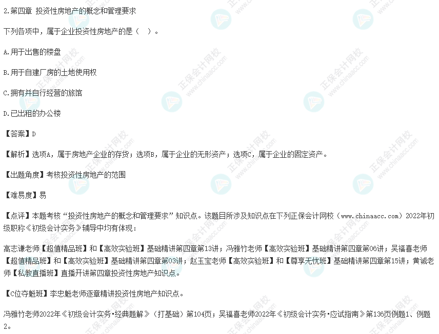 黄诚老师的课程中直播开讲第四章投资性房地产知识点——【80%相似度】