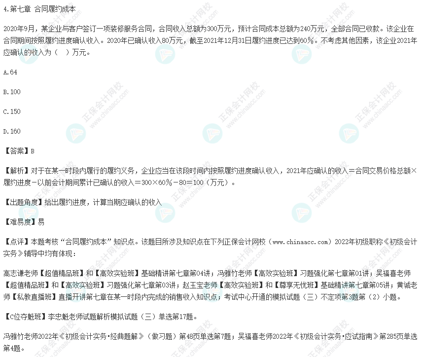 吴福喜老师2022年《初级会计实务•应试指南》第285页单选第4题——【95%相似度】