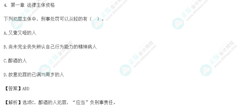 【出题角度】考核自然人的刑事责任能力