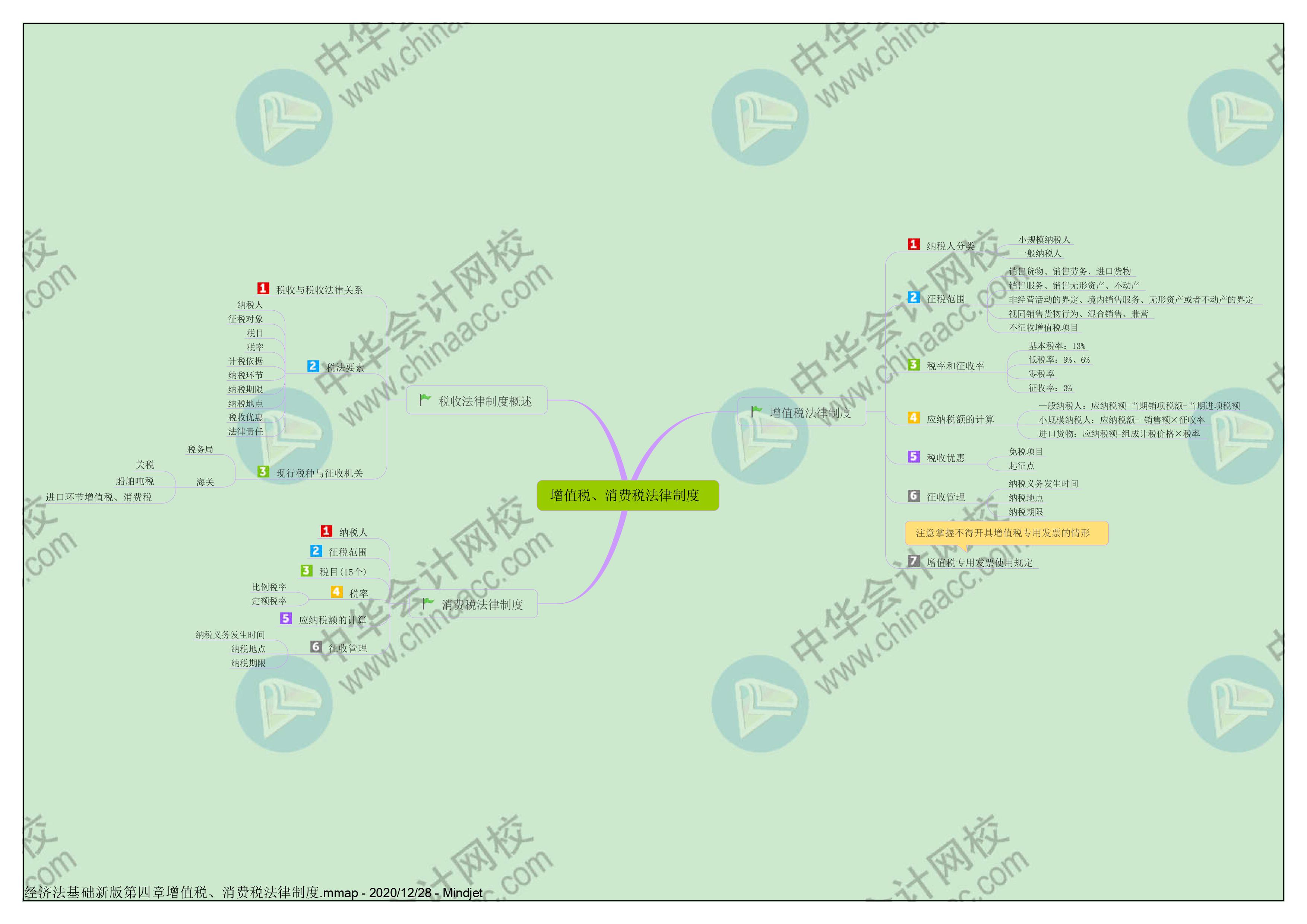 《经济法基础》思维导图:第四章增值税、消费税法律制度