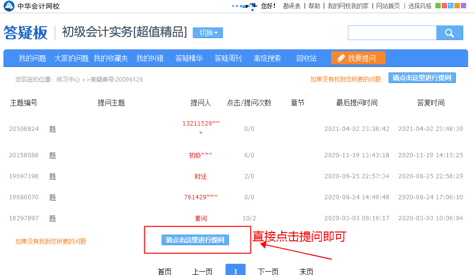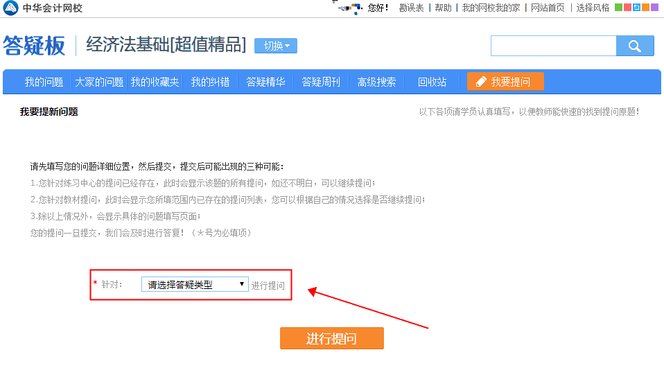 方法一:登录账号,进入“我的网校我的家”,在课程下方点击答疑板即可进行提问。