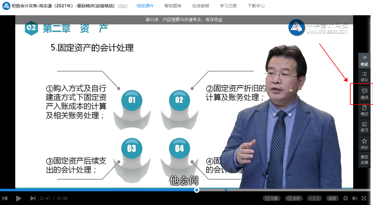 方法三:在听课页面,点击右侧的【提问】按钮即可进入提问页面。
