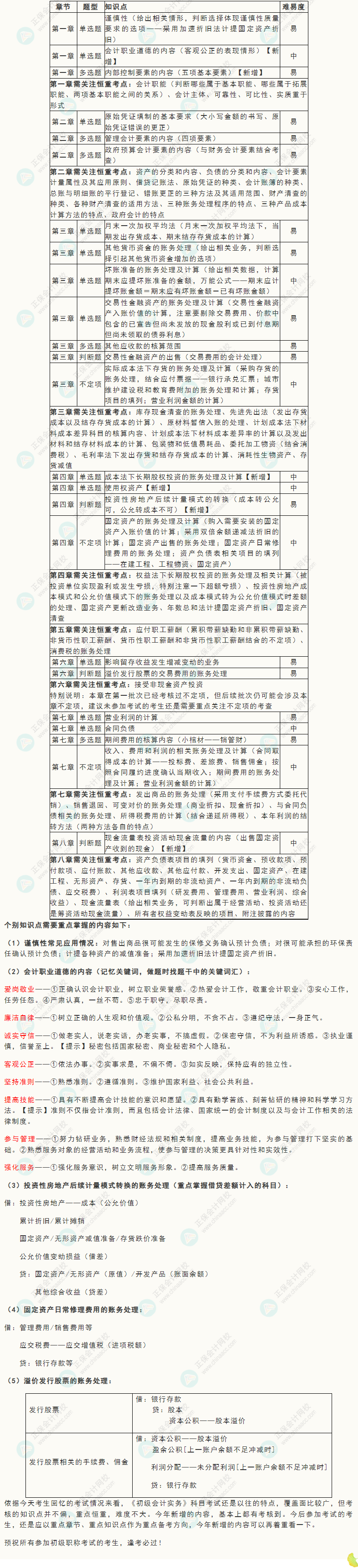 2022年8月2日初级会计职称考试已经结束,大家都考得怎么样呢?听说今天的考题不是很难哦,还没有考试考生有信心啦!来来来,网校给大家整理好了各章节的知识点和难易程度,一起来了解下。