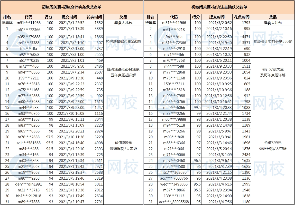 初级会计答题闯关赛活动目前已经结束啦,从3月1日活动开始起有超过三万人参加了我们的活动,收到了大家热烈的回响!虽然目前初级会计答题闯关赛活动已经结束了,但是!打败第十关大boss的高手们还能获得各种备考好礼哦!获奖名单如下: