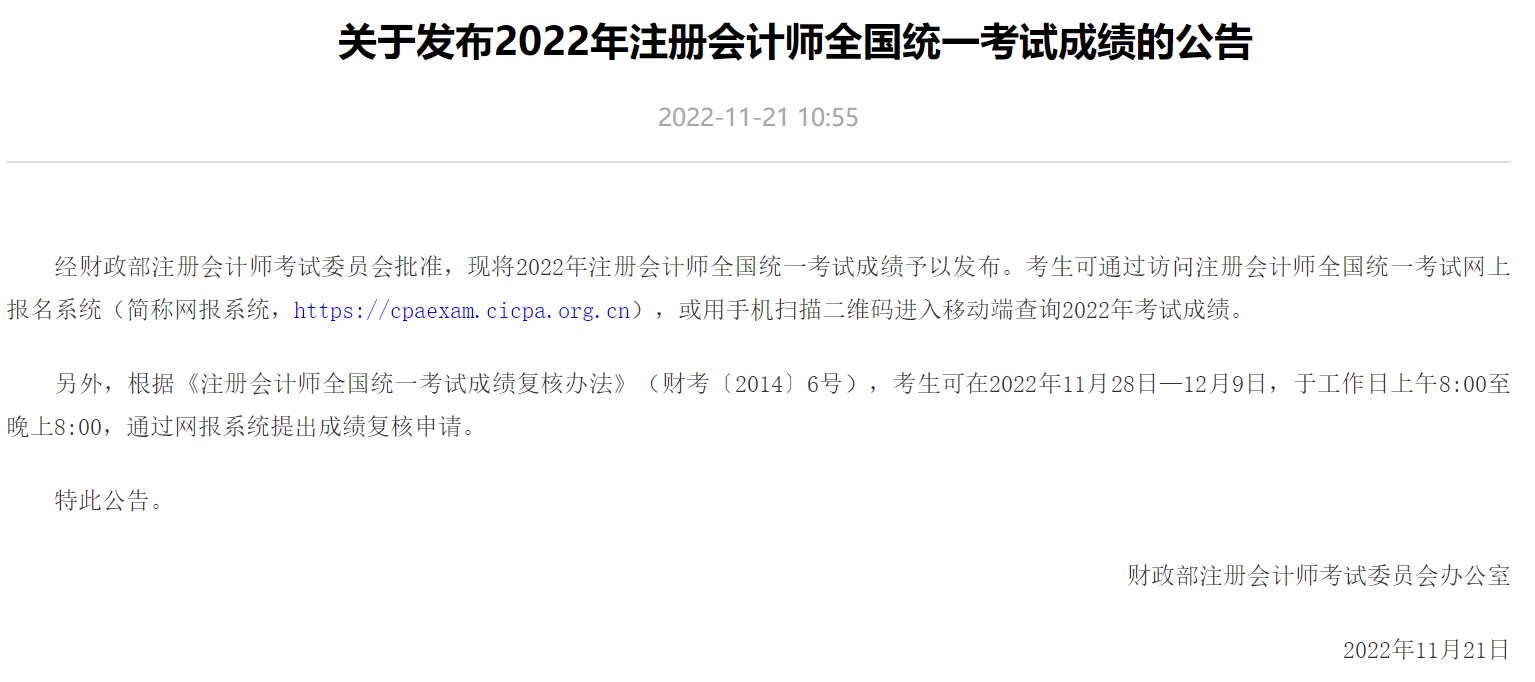 2022年注册会计师考试成绩公布啦~快速点击进入注会查分入口>>