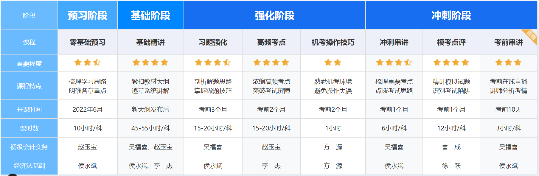| 考试科目 | 《初级会计实务》《经济法基础》 | 《会计》《审计》《财务成本管理》《税法》《经济法》《公司战略与风险管理》 |