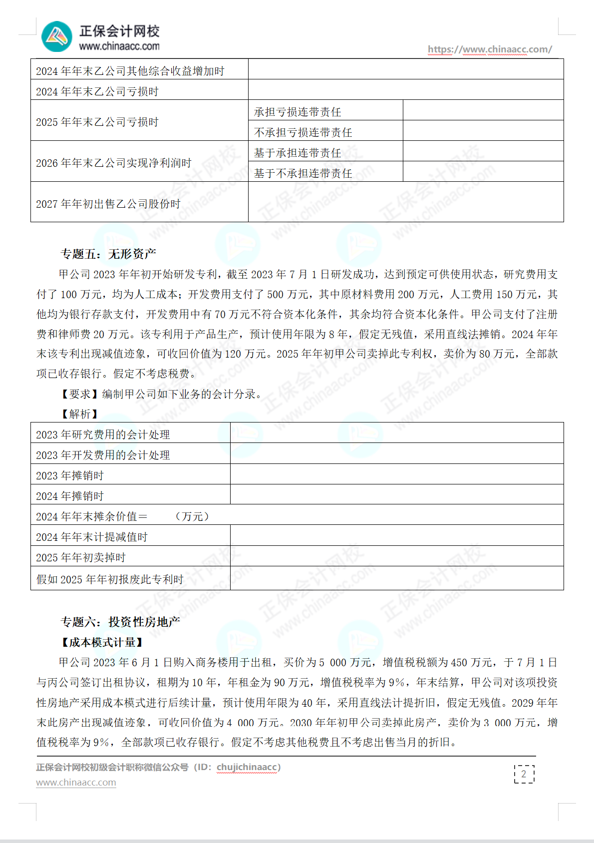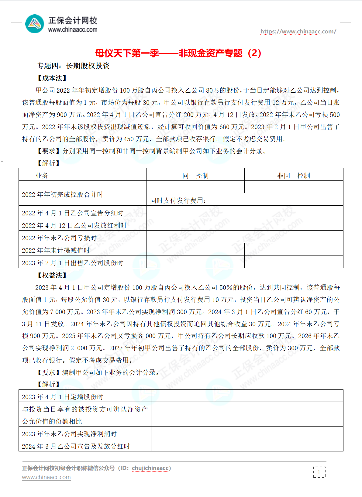 再来!继初级会计高志谦老师母仪天下第一季:非现金资产专题(1)发布后,广大考生在冲刺备考之余一直期待的非现金资产专题(2)终于来啦!本次重点:长期股权投资、无形资产、投资性房地产。