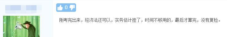 刚考完出来,经济法还可以,实务估计挂了,时间不够用,最后才算完,没有复检。