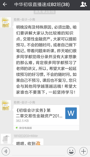 石江南老师:我们采用的微信群管理,每天,我会坚持督促学生进行预习和复习,学生也可以单独加我的微信,我可以根据学生的个人情况,给她制定相应的学习时间和学习规划,我经常跟同学说,我们要利用平时的时间去理解每节课老师讲解的内容,利用碎片化的时间去进行复习,让我们平时就把基础知识打牢固。作为零基础的学生,您的心态很重要,如果您遇到任何学术或者学习方法上的问题,都可以问我的,我很乐意帮助您解答。
