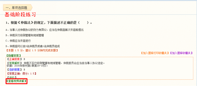 所有题目,无论是“课后作业”还是“基础阶段练习”,每一道练习题都有详细精准的答案解析!同时,“基础阶段练习”每一道题都有“视频讲解”,实现“题、课”完美结合,轻松掌握考试重、难点!
