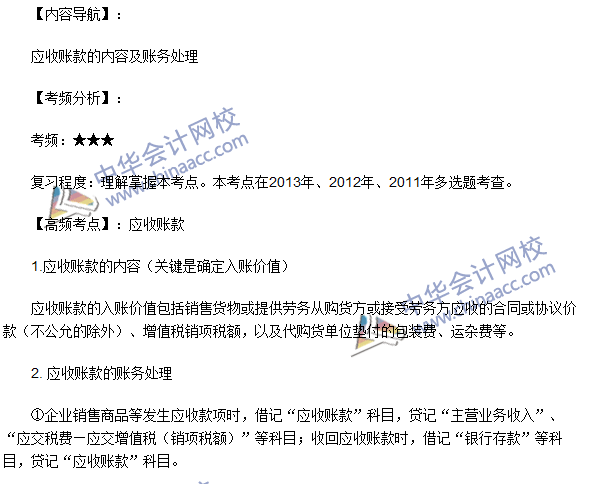 2016年初级会计职称备考已经进入最后的冲刺阶段,为帮助考生们高效备考,正保会计网校教学专家根据丰富的教学经验,整理了初级会计职称各科的高频考点。下面是《初级会计实务》第一章资产第二节应收及预付款项的内容。