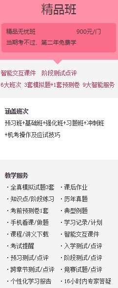 精品无忧班适合基础较差,需要按照网校课程安排学习,从基础学起,逐步掌握初级知识点;当期考不过,第二年免费学。