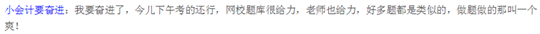 从学员们的评论不难看出,2017年初级会计职称考试的很多题型,网校老师都有讲授过,所以大家的做题思路都很清晰。特别需要划重点的地方是,学员们普遍反映网校无纸化考试模拟系统的题库很给力,考试中的题型有很多都与题库中的类似,还没参加考试的考生们,还不快去刷题>>