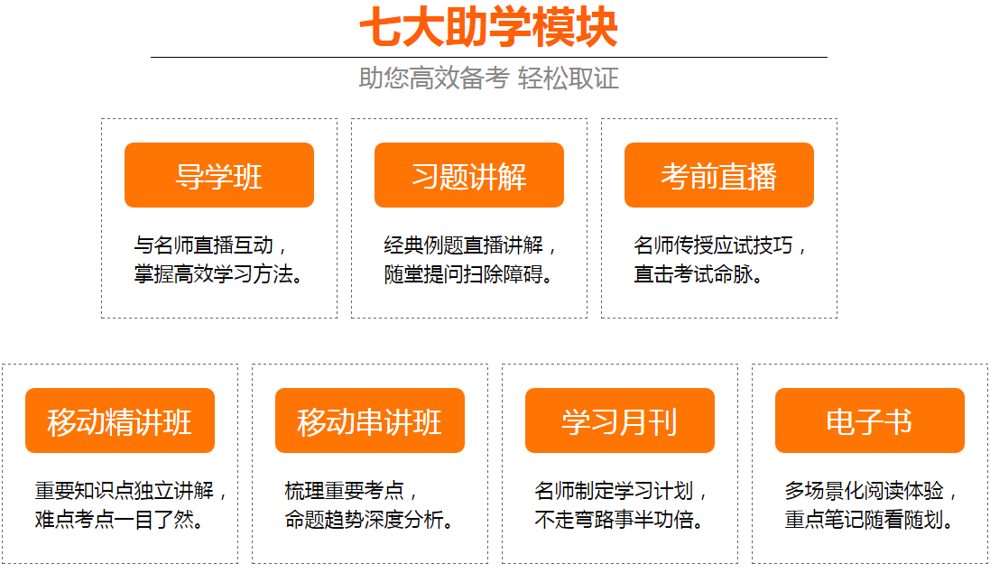 2、移动端专属学习体系,内含课程讲解、专家答疑、必备辅导书、老师直播、内部学习资料。充分利用碎片时间,高效备考,轻松取证!