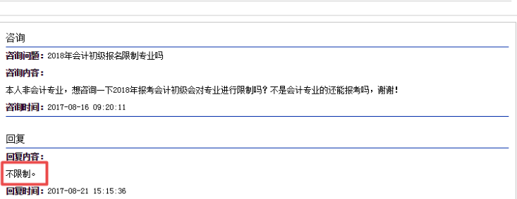 2018年初级会计职称考试依旧不限制专业。所以想要跳槽到会计行业,或者对自己专业不感兴趣打算毕业后进入财会行业的考生,你们的机会来了。只要肯努力,专业不是问题,初级会计职称证书等你们来征服。