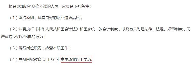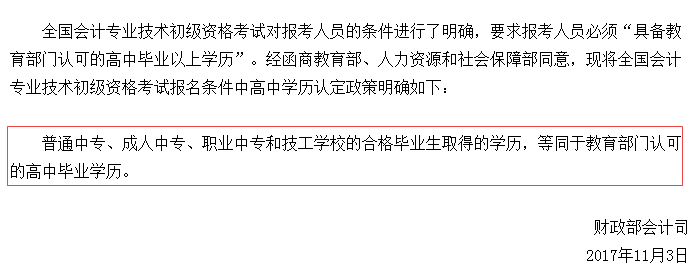 三、财政部发文 中专学历等同于高中学历 可报考初级
