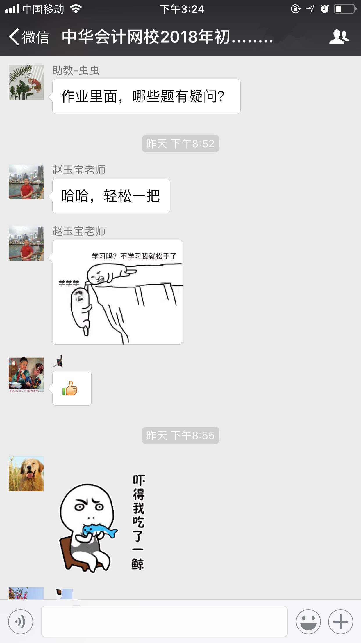 在课下,初级面授班的学员们还会经常聚在班群里,讨论一些学习上、工作上遇到的各种问题,大家一起交流心得、分享经验,保持着高度的热情。就连我们正保会计网校的大咖级老师——赵玉宝老师,都忍不住要时常在面授班的交流群中与大家亲密互动,看到赵老师这么用心的鼓励大家,你是不是也深受鼓舞呐。