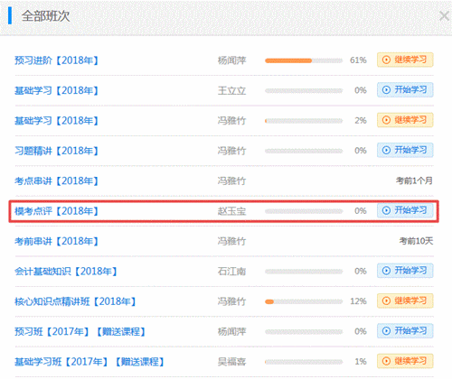 初级备考时不我待,距离5月12日的初级会计职称考试时间越来越近了,为了帮助备考初级的小伙伴们抓住剩余的时间高效备考、快速备考,网校快马加鞭地录制了冲刺串讲的课程内容。其中,老师赵玉宝老师和张稳老师的《初级会计实务》和《经济法基础》模考点评课程已经开通,由两位老师为考生精讲模拟试题,助考生识别考试陷阱。已购买“考前点题密训班”及“特色直达班”、“精品备考班”、“定制上岗班”的学员,直接用登录名(学员代码)登录网校,进入我的家即可观看哦。还没开通课程的小伙伴,戳这里>>