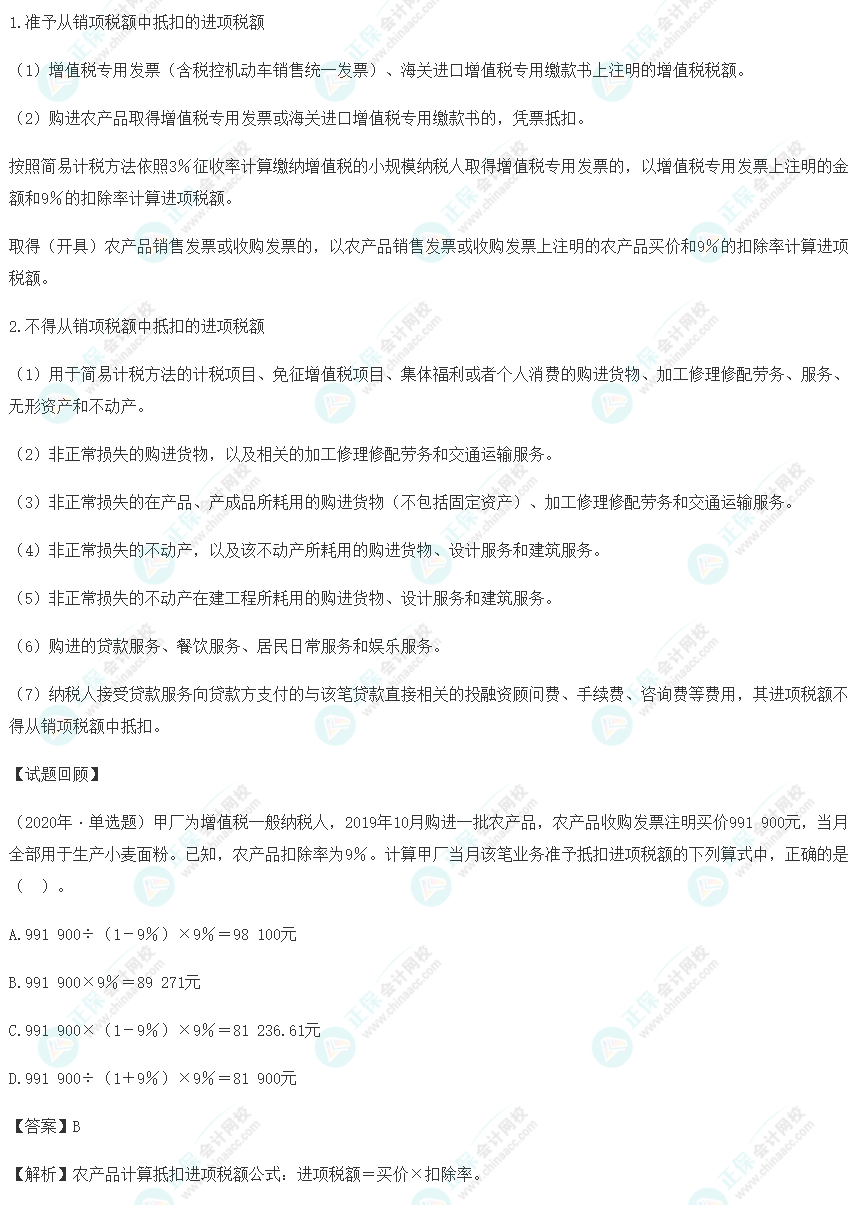 【高频考点】增值税应纳税额计算之进项税额