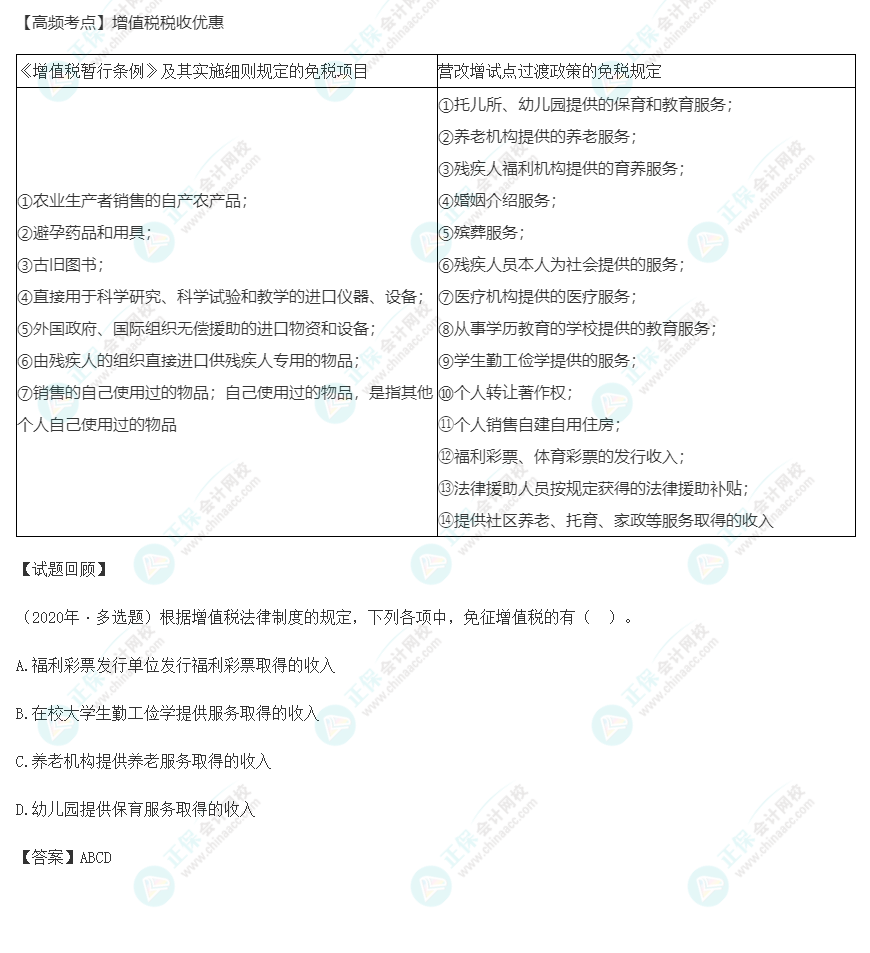 1.《增值税暂行条例》及其实施细则规定的免税项目