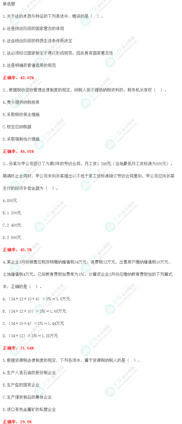 根据第二次万人模考的答题情况,正保会计网校教研团队为大家整理了经济法基础【单选题】的高频错题,希望能帮助大家在今后的复习中避免此类错题,一起来看吧!