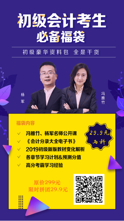 最后,小编要再次提醒各位小伙伴们,初级会计一年仅考一次,否则错过了,就要等到第二年了哦!如果已经报考了2019年初级会计职称考试的小伙伴们,一定要珍惜这次机会呀!来来,看看贴心的小编带来了什么好东西!↓↓↓