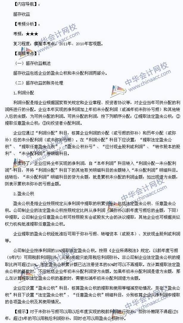 我们一起来学习2013初级会计职称《初级会计实务》高频考点:留存收益。本考点属于《初级会计实务》第三章所有者权益第三节留存收益的内容。