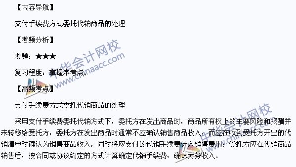 我们一起来学习2013年初级会计职称《初级会计实务》高频考点:支付手续费方式委托代销商品的处理。本考点属于《初级会计实务》第四章收入第一节销售商品收入的内容。