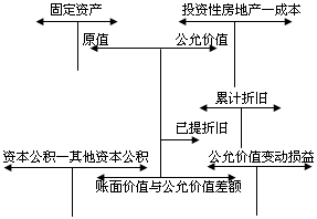或者按其在转换日的公允价值,借记“投资性房地产——成本”科目,按照已计提的累计折旧等,借记“累计折旧”等科目,按其账面余额,贷记“固定资产”等科目,按其差额,贷记“资本公积——其他资本公积”科目(贷方余额情况下)或借记“公允价值变动损益”科目(借方余额情况下)。已计提固定资产减值准备的,还应同时结转固定资产减值准备。