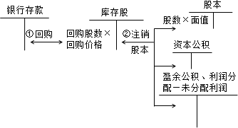 股份有限公司以收购本企业股票方式减资的,按注销股票的面值总额减少股本,购回股票支付的价款超过面值总额的部分,依次冲减“资本公积”、“盈余公积”和“利润分配——未分配利润”等科目;相反增加资本公积(股本溢价)。