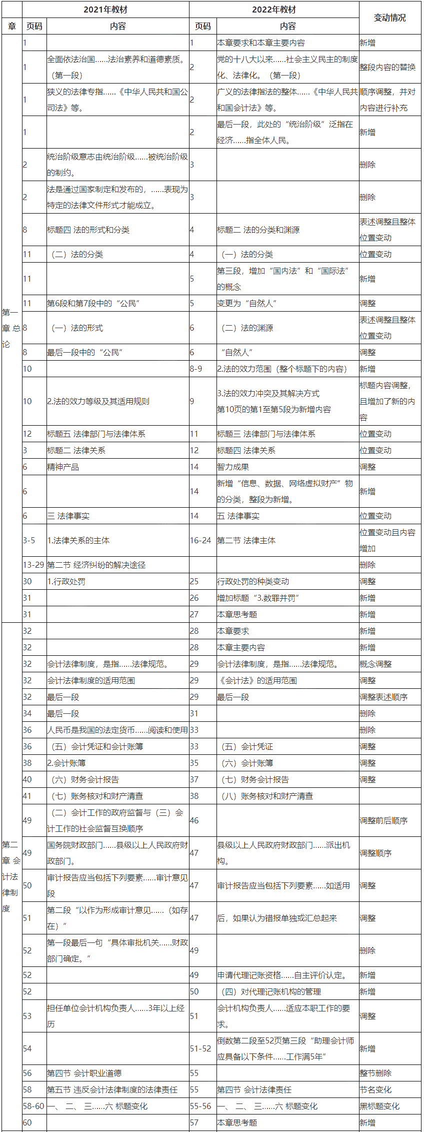 2022年初级会计考试教材终于正式出版啦!为方便各位考生了解考试新、旧教材变化详情,正保会计网校教研团队老师特整理了2022年初级会计《经济法基础》考试教材与2021年教材的对比变化,希望可以帮助大家更好备考哦,详情如下: