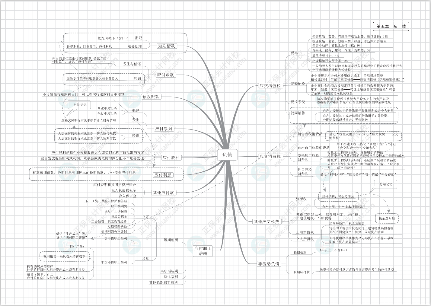 以下是2022初级会计《初级会计实务》思维导图:第五章负债的具体内容,小伙伴们来学习!