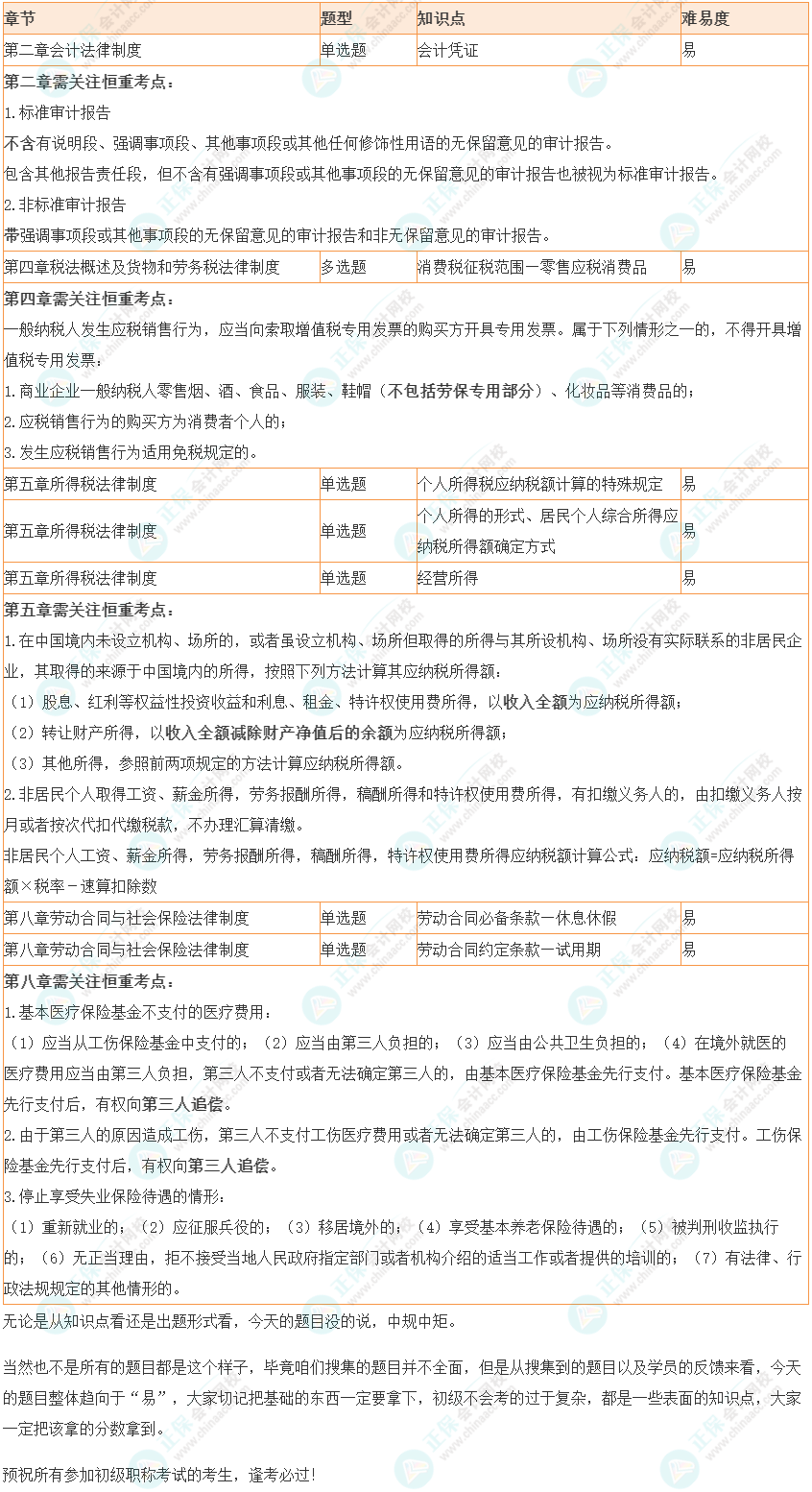 以下为正保会计网校根据考生回忆内容为大家整理的2022年8月5日初级职称《经济法基础》科目考情分析。