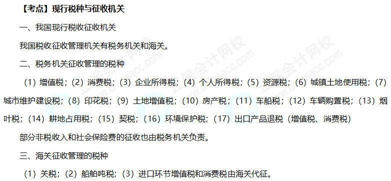 2023初级《经济法基础》预习打卡第9关知识点:现行税种与征收机关