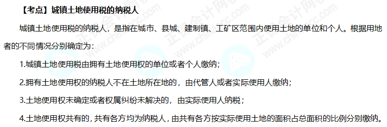 2023初级《经济法基础》预习打卡第23关知识点:城镇土地使用税的纳税人